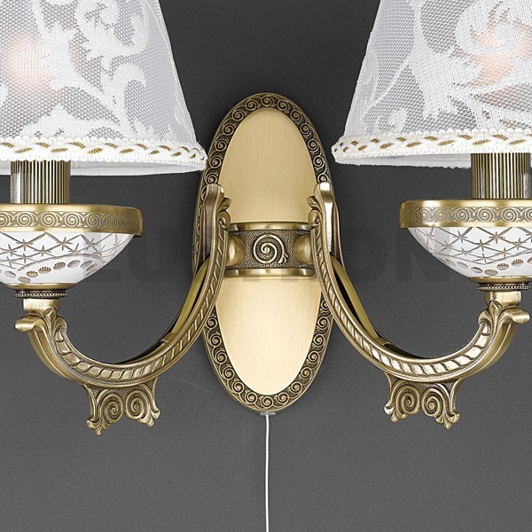 Бра Reccagni Angelo A 7032/2_RA от итальянского производителя Reccagni Angelo. Данную модель серии 7032 RA отличает интересное оформление, которое может стать важным акцентом в оформлении дома.Высота: 25 см; Ширина - 38 см.