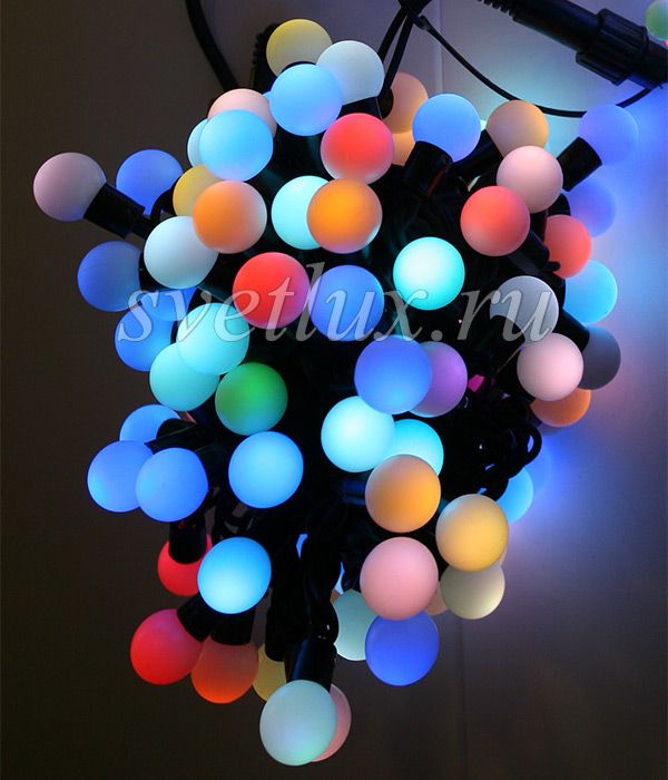 | Номенклатура | Гирлянда «Шарики» 10м RGB 220B, Диаметр Шарика 23мм, 100 LED, Провод Черный Каучук, IP65 |