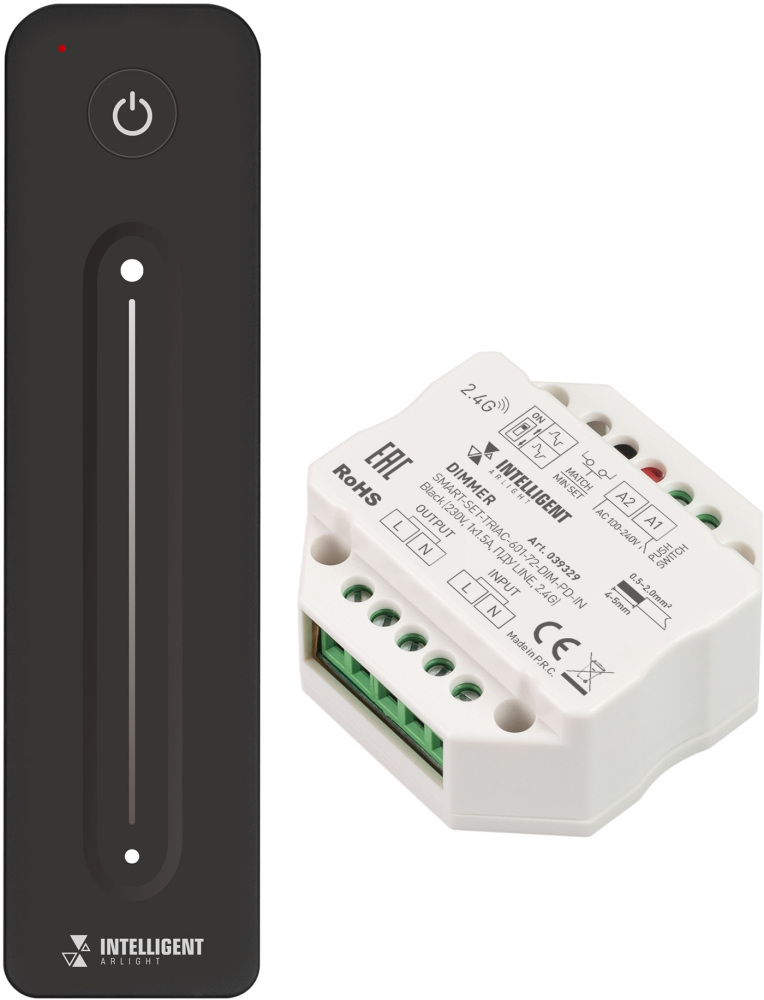 INTELLIGENT Диммер SMART-SET-TRIAC-601-72-DIM-PD-IN Black (230V, 1x1.5A, ПДУ LINE, 2.4G) (IARL, IP20 Пластик, 5 лет) 039329 Arlight 039329_ARL