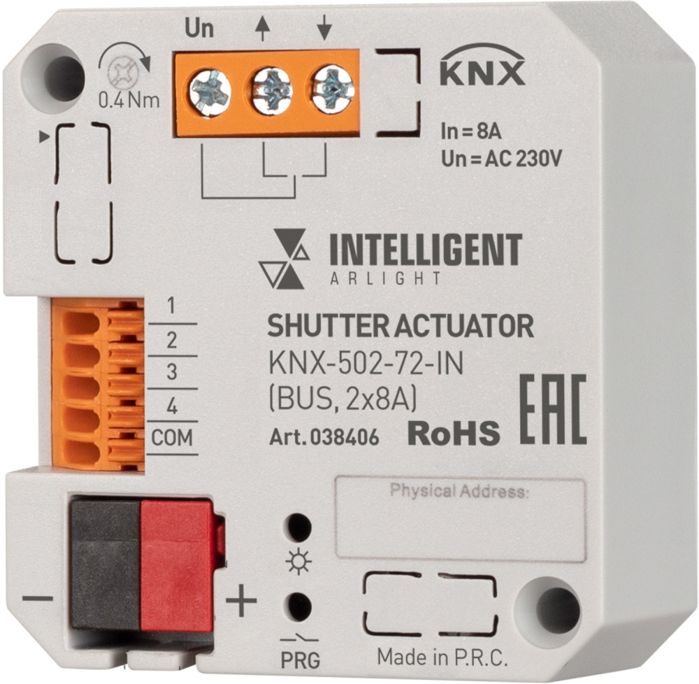 INTELLIGENT Модуль управления шторами KNX-502-72-IN (BUS, 2x8A) (IARL, IP20 Пластик, 3 года) 038406 Arlight 038406_ARL