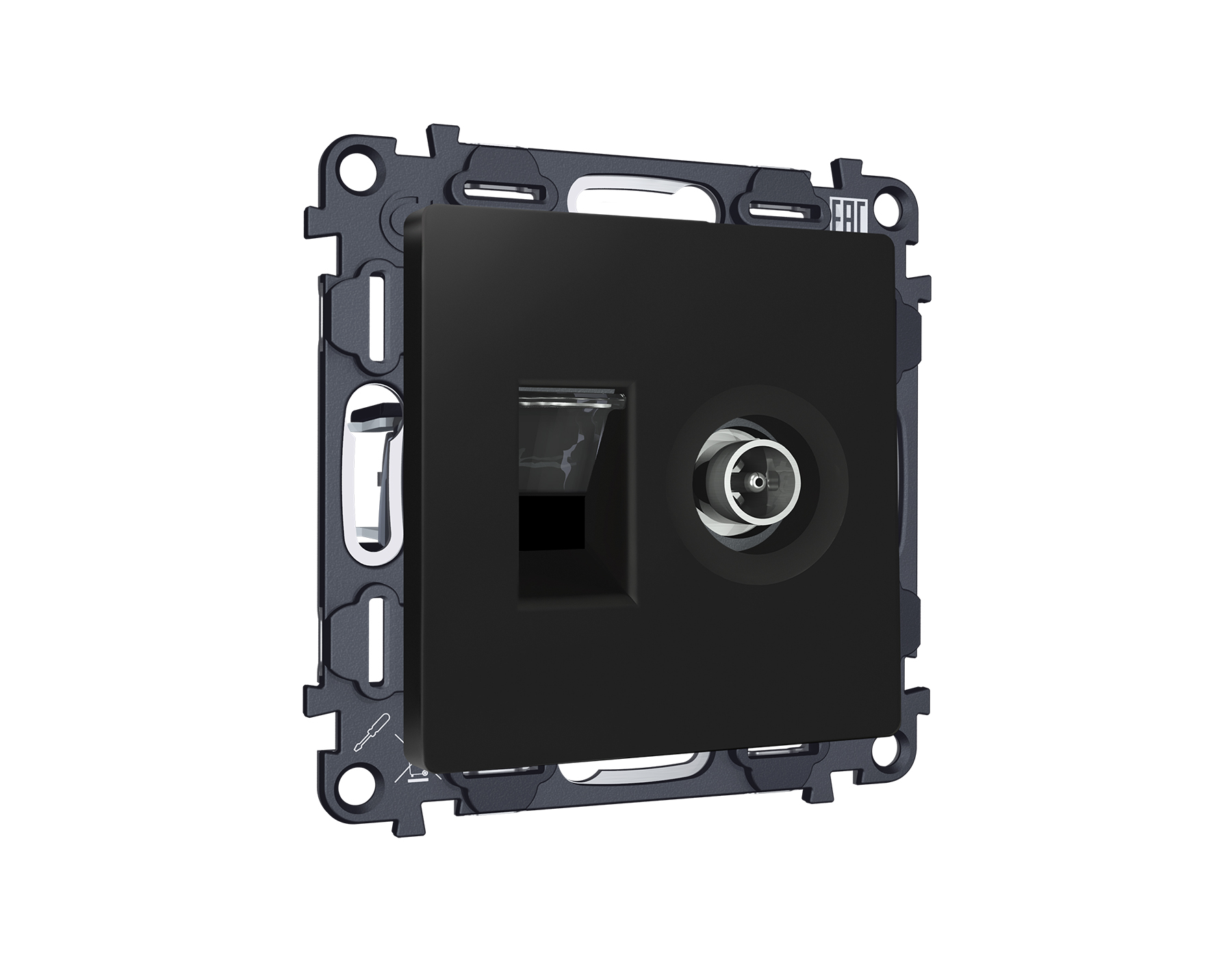 | Номенклатура | MA812510 Комплект механизма розетки компьютерной + TV оконечной RJ-45 с автоматической защитной шторкой ALFA Черный матовый (AP8125, VM195) |