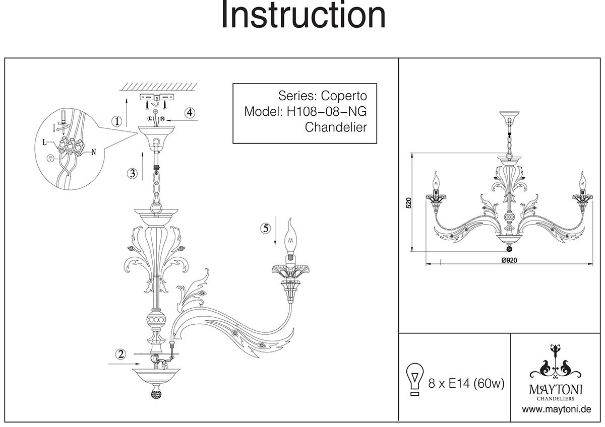 Производитель Maytoni оснастил данный светильник лампами с цоколем E14 и максимальной мощностью 60 Ватт. Применив в изделии современные светодиодные LED лампы, Вы получите достаточную освещённость в помещении.