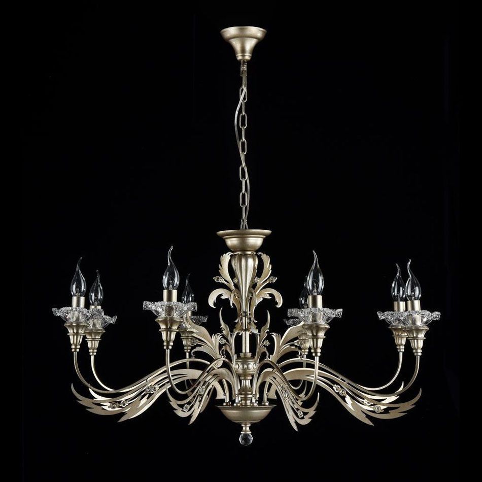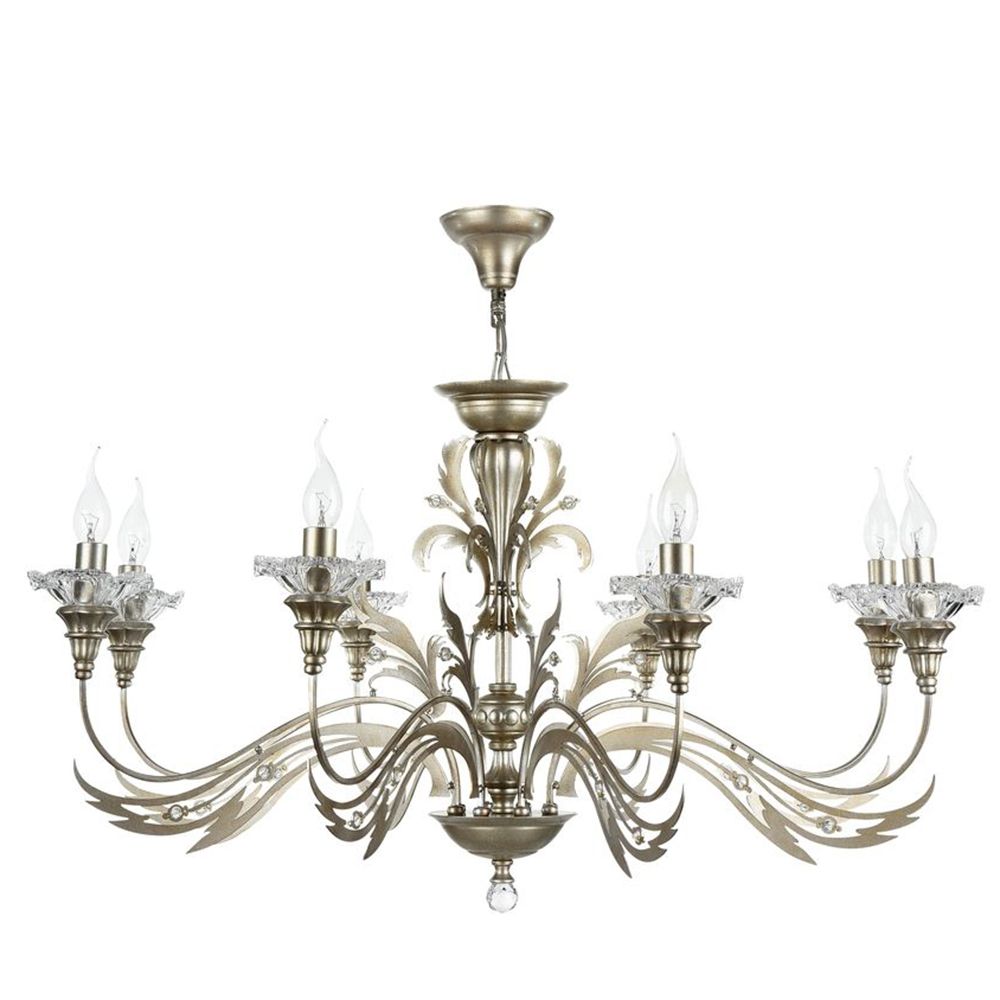 Люстра Coperto H108-08-NG_MY от немецкого производителя Maytoni. Эту модель серии Coperto выделяет оригинальное оформление, которое может стать главным акцентом в оформлении помещения. Производитель использовал такие элементы декора: декоративные элементы из прозрачного стекла.Высота – 51 см, Диаметр – 92 см.
