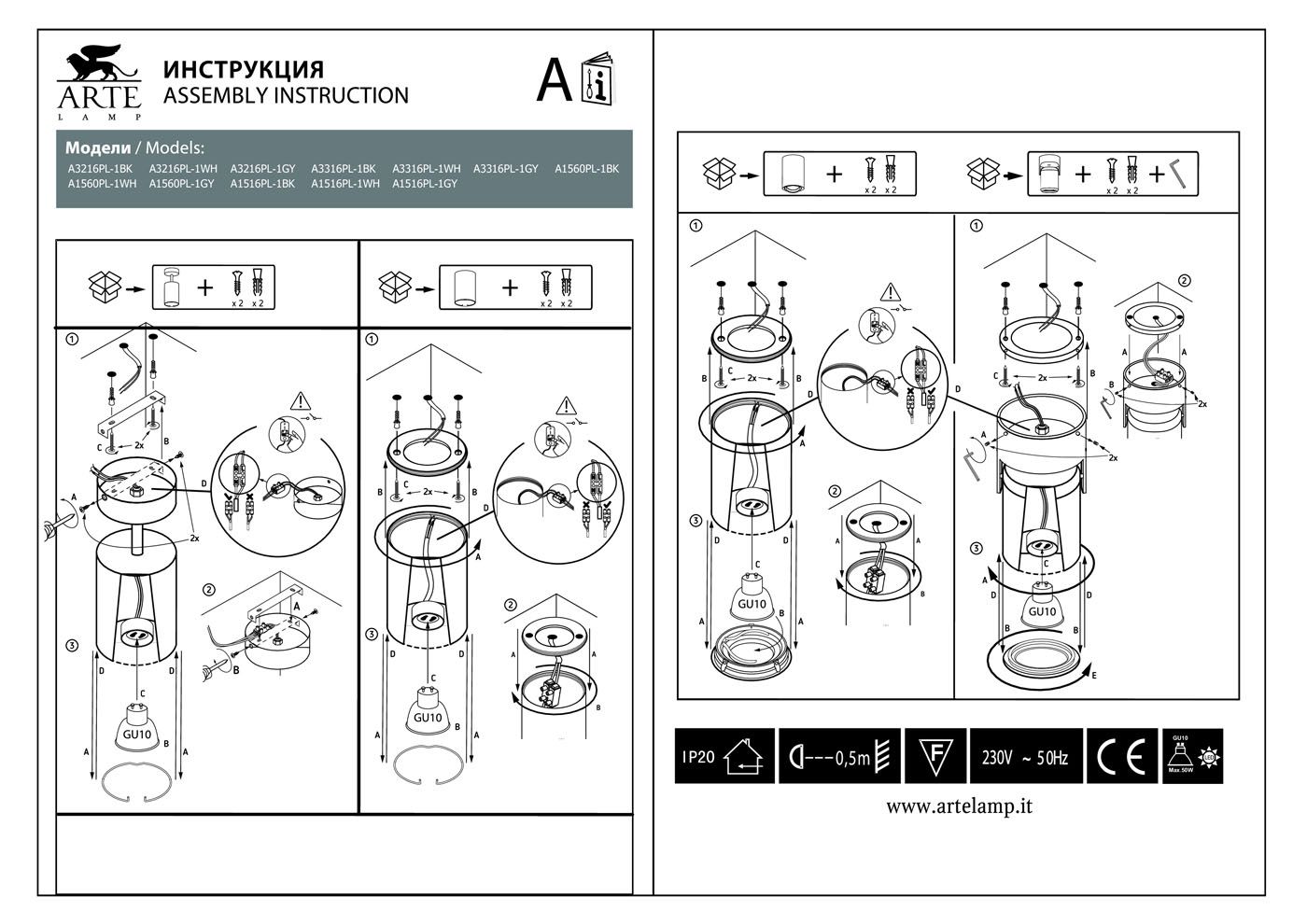 | Тип цоколя ламп | GU10 |