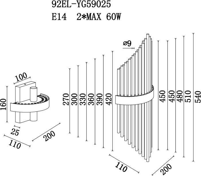 | Номенклатура | 92EL-YG59025 Бра латунь, стекло прозр. 20*11*h.54см |