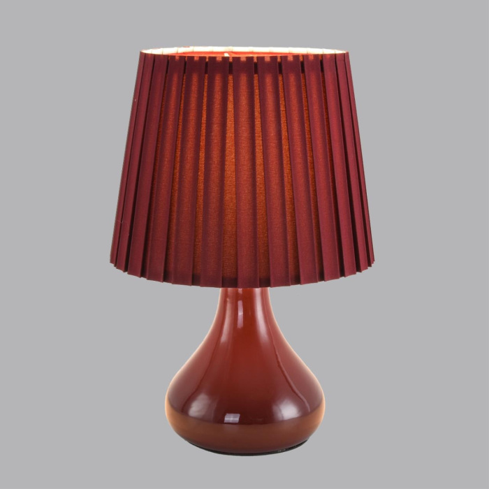 Лампа выполнена в интересном дизайне, который может стать важным акцентом в оформлении помещения. Арматура светильника изготовлена из керамики и текстиля, что придает ему особую эстетику и прочность. Цвет арматуры – бордовый, что позволяет гармонично вписать лампу в любой интерьер.