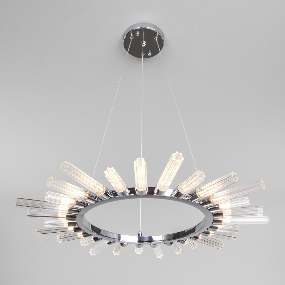 Цвет арматуры подвесной люстры Eurosvet Rhyton 60167/8 никель (Умный дом, Алиса, WiFi, голосовое управление) кольцо Bogate's 558_EU - хром.
