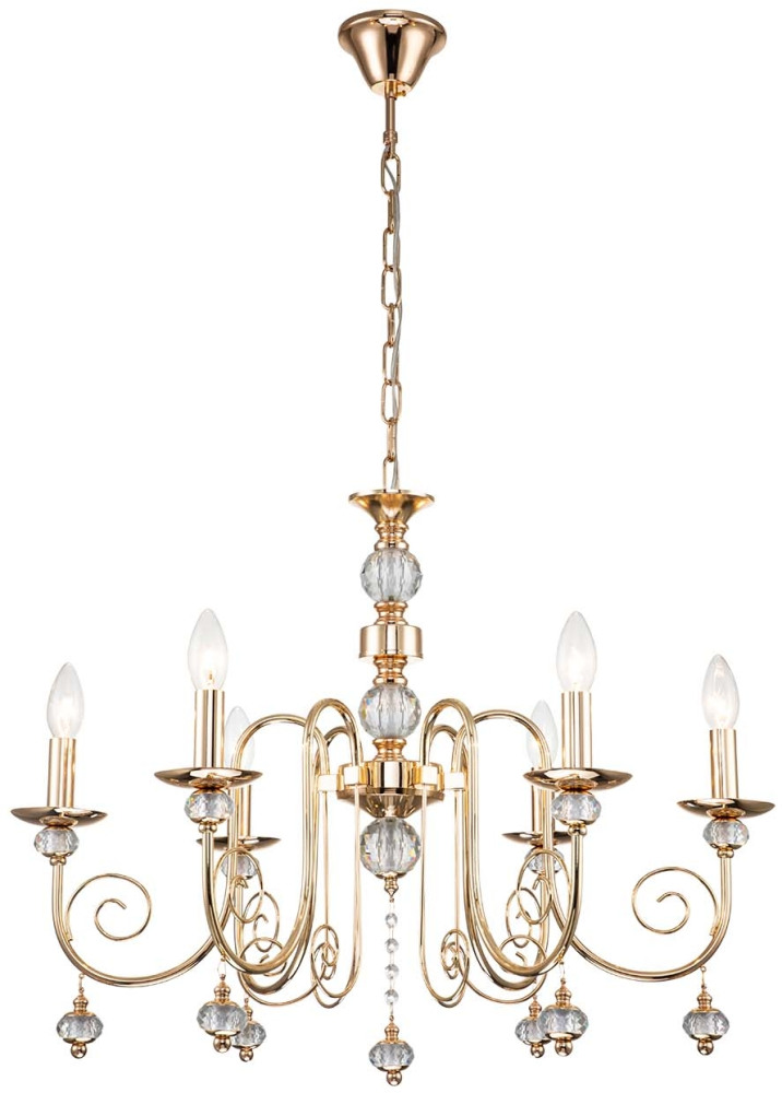Подвесная люстра хрусталь 678/6PL E14*40W Escada 678/6PL Gold_ESC от китайского производителя Escada. Этот светильник серии Коллекция Shine отличает неповторимое оформление, которое может стать главным акцентом в оформлении дома.Высота: 58 см; Ширина - 68.5 см.