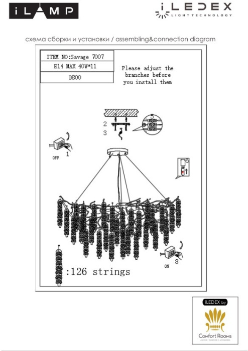 Производитель ILamp оснастил эту модель лампами с цоколем E14 и максимальной мощностью 40 Ватт.