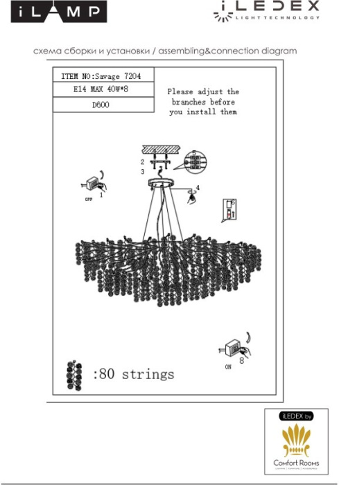 Производитель ILamp оснастил этот светильник лампами с цоколем E14 и максимальной мощностью 40 Ватт.