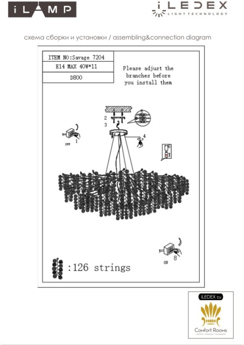 Бренд ILamp оснастил данный светильник лампами с цоколем E14 и максимальной мощностью 40 Ватт.