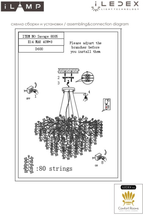 Производитель ILamp оснастил этот светильник лампами с цоколем E14 и максимальной мощностью 40 Ватт.