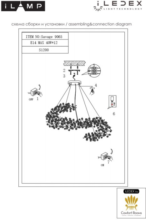 Производитель ILamp оснастил этот светильник лампами с цоколем E14 и максимальной мощностью 40 Ватт.