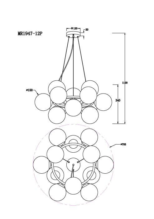 Подвесная люстра MyFar Aerton MR1947-12P от российского производителя MyFar. Этот светильник серии Aerton MF отличает неповторимое оформление, которое может стать ключевым акцентом в оформлении комнаты.Высота: 112 см; Ширина - 71 см.