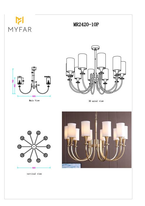 Потолочная люстра на штанге MyFar MR2430-8P