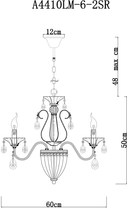 Люстра ArteLamp SCHELENBERG A4410LM-6-2SR имеет высоту 50 см и ширину 57 см, что позволяет использовать ее в помещениях с высокими потолками.