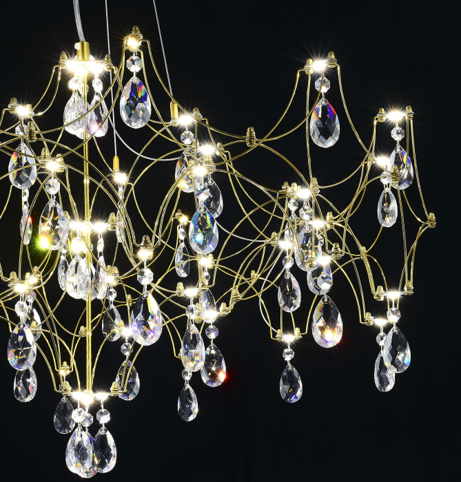 Цвет арматуры подвесной люстры светодиодная с пультом и хрустальными подвесками Asfour MyFar MR2653-57P-50AD - латунь.