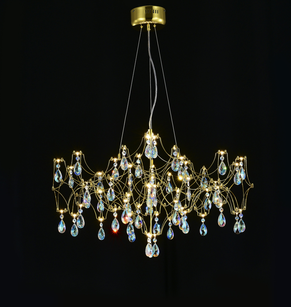 Цвет арматуры подвесной люстры светодиодная с пультом и хрустальными подвесками K9 MyFar MR2653-57P-50CD - латунь.