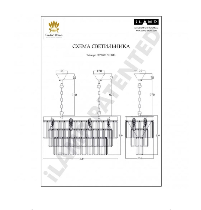 Цвет арматуры подвесной люстры ILamp Triumph 6119-800 NIC_IP - никель.