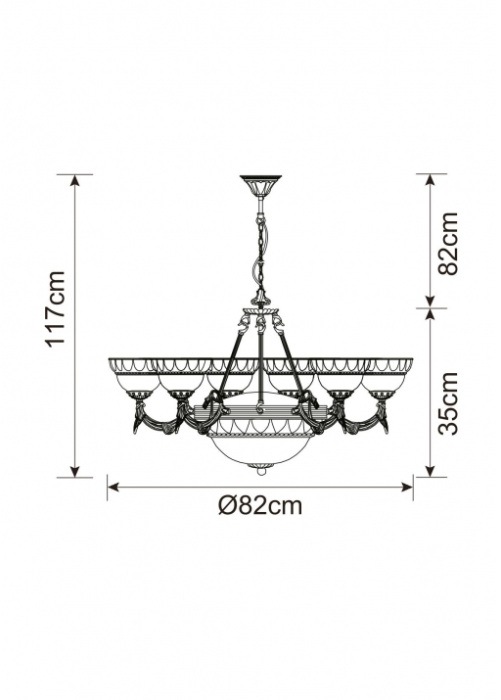 Подвесная люстра ArteLamp WINDSOR A3777LM-6-2AB от итальянского бренда ArteLamp. Эту модель серии Windsor отличает интересное оформление, которое может стать важным акцентом в оформлении комнаты.Высота: 35 см; Ширина - 76 см.