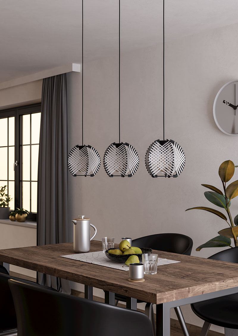 | Номенклатура | 44007 Подвесной светильник WAVERTON, 3х40W (E27), L920, B220, H1100, сталь черный / текстиль, дерево, белый, черный |