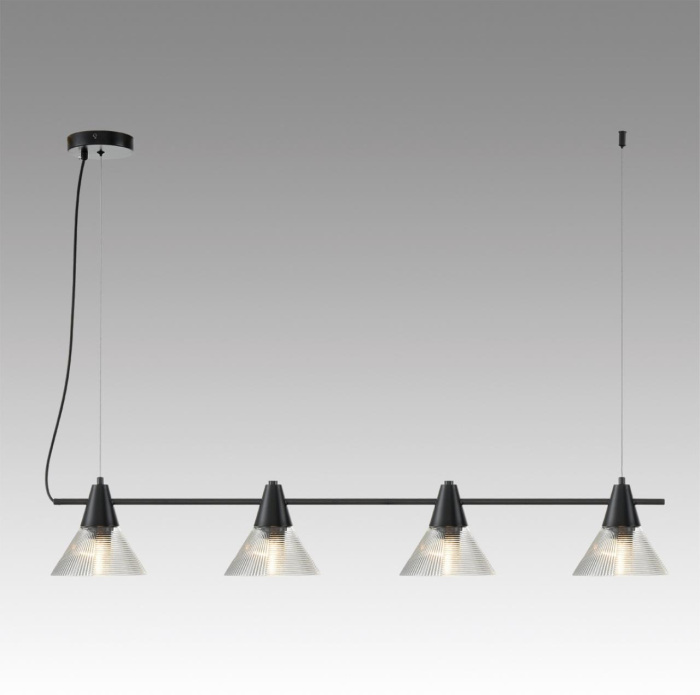| Номенклатура | 6595/4A MODERNI LN24 черный/прозрачный, металл/стекло Подвес E27 4*60W 220V CORNE |