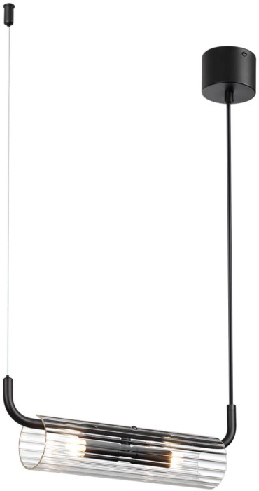 Светильник выполнен в современном стиле и сочетает в себе металл и стекло. Арматура черного цвета придает светильнику неповторимый и элегантный вид. Плафон светильника выполнен из бесцветного стекла, что обеспечивает равномерное распределение света.