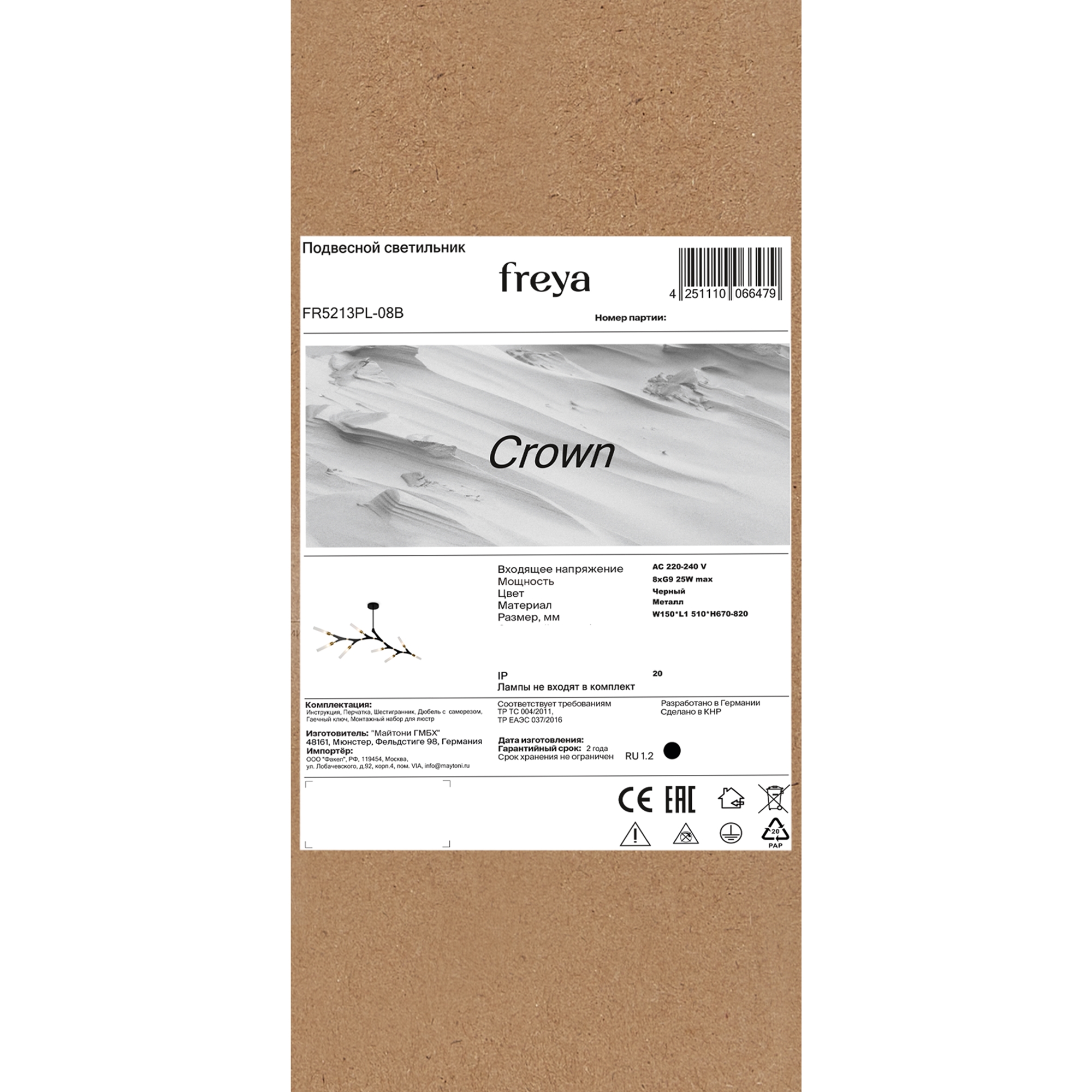 Бренд Freya оснастил данную модель лампами с цоколем G9 и максимальной мощностью 25 Ватт.