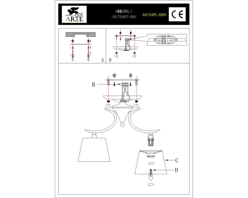 Производитель ArteLamp применил в этой люстре лампы с цоколем E14 и максимальной мощностью 40 Ватт. Использовав в изделии современные светодиодные LED лампы, Вы получите достаточную освещённость в комнате.