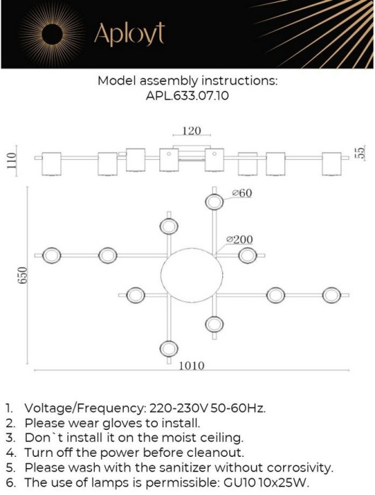 Производитель Aployt оснастил данную модель лампами с цоколем GU10.