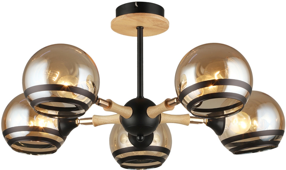 Потолочная люстра на штанге MD.4896-5-S BK+WOOD Imex MD.4896-5-S BK+WOOD_IM