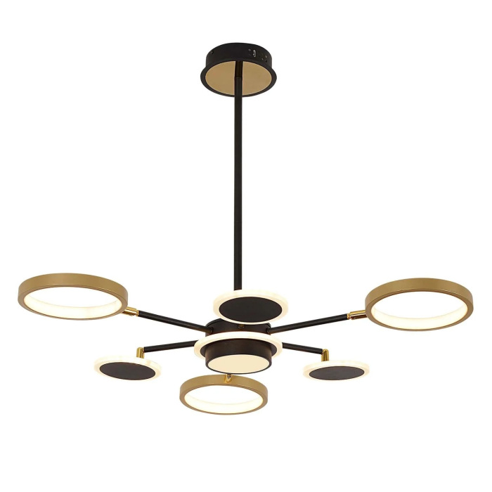 Цвет арматуры потолочной люстры на штанге светодиодная с ПДУ F-Promo 4687-7P - черный, золотой.