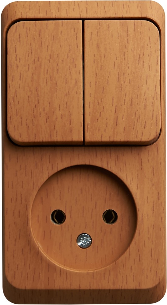 Розетка накладная без заземления с двухклавишным выключателем (бук) Systeme Electric BPA16-205T