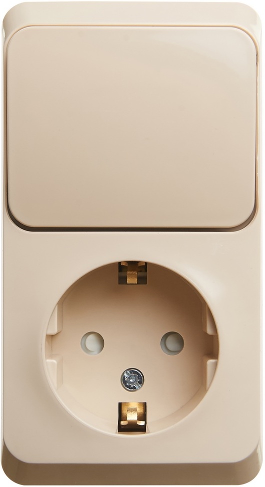 Розетка накладная с заземлением с одноклавишным выключателем (кремовый) Systeme Electric BPA16-201K