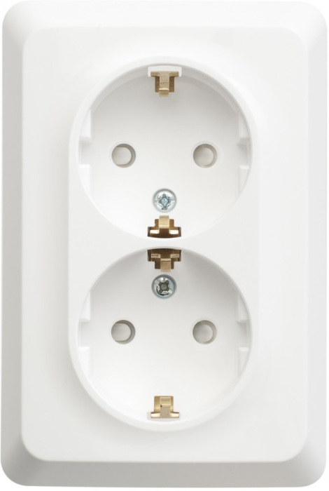Розетка встраиваемая двойная с заземлением (белый) Systeme Electric PC16-007B