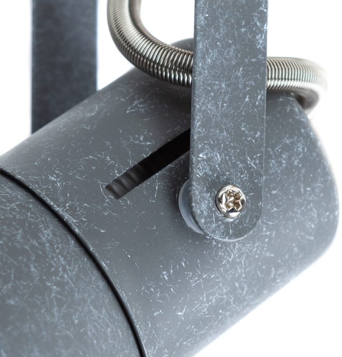 Арматура спота выполнена из металла и имеет серый цвет, что придает светильнику современный и стильный вид. Плафон также выполнен из металла и окрашен в серый цвет, что делает его гармоничным дополнением к арматуре.