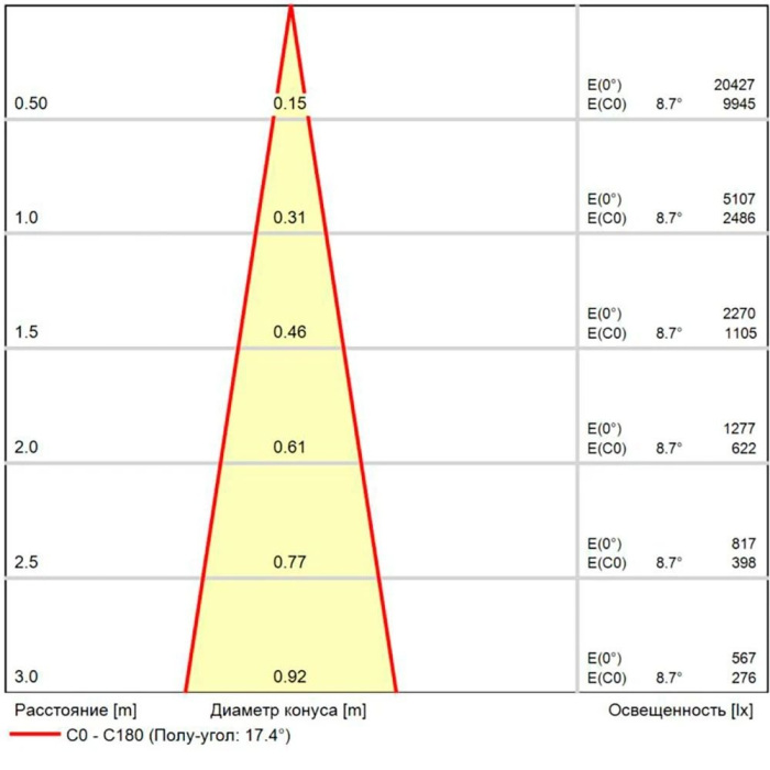 | Площадь освещения, м2 ? |