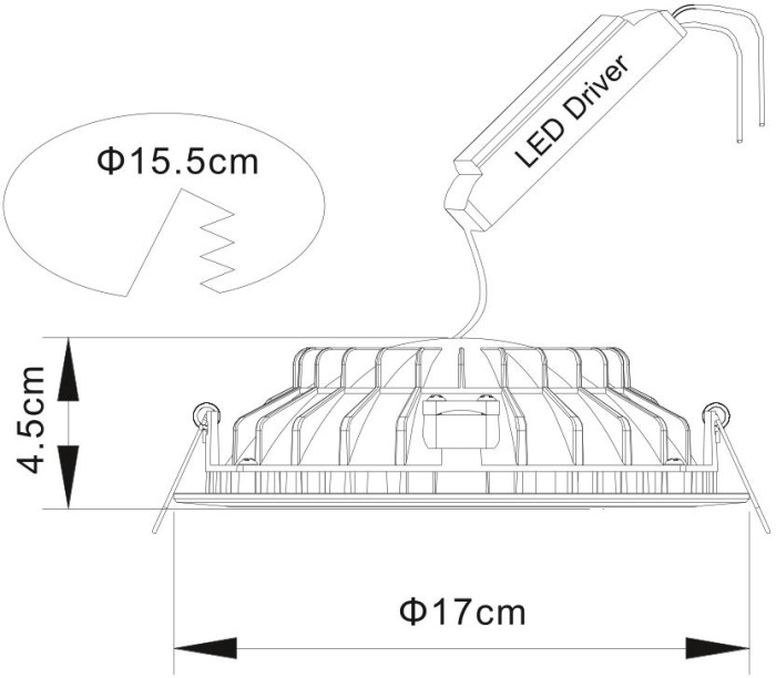 | Диаметр монтажного отверстия, см | 15.5 |